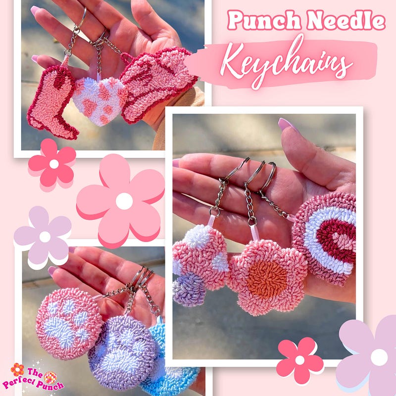 Punch needle keychains are a trendy accessory that add a touch of handmade charm to your everyday life. Choose from a variety of colors and designs, and find a keychain that reflects your style. Whether you love flowers, cowboy boots, or cute patterns, we have a punch needle keychain for everyone.